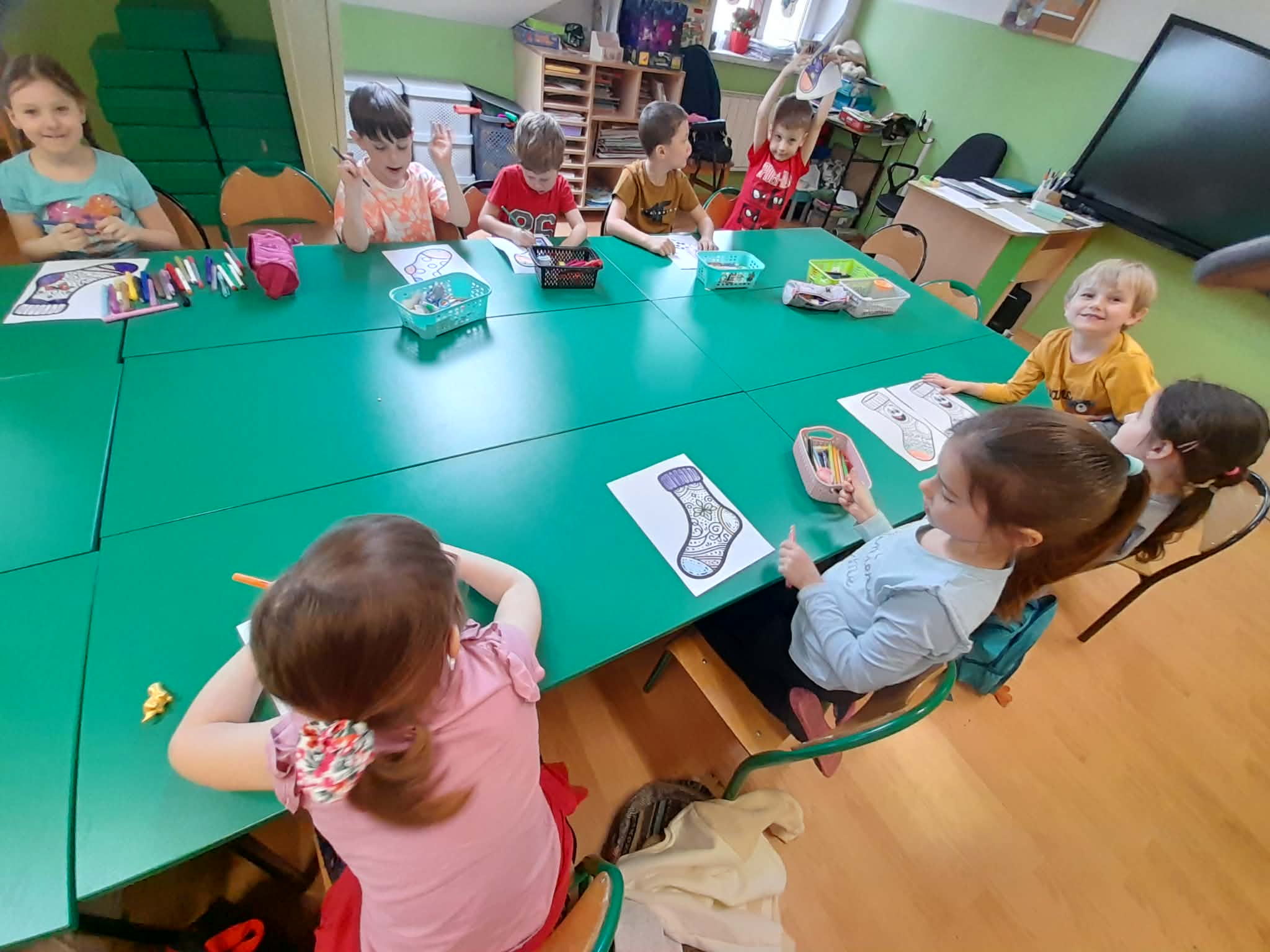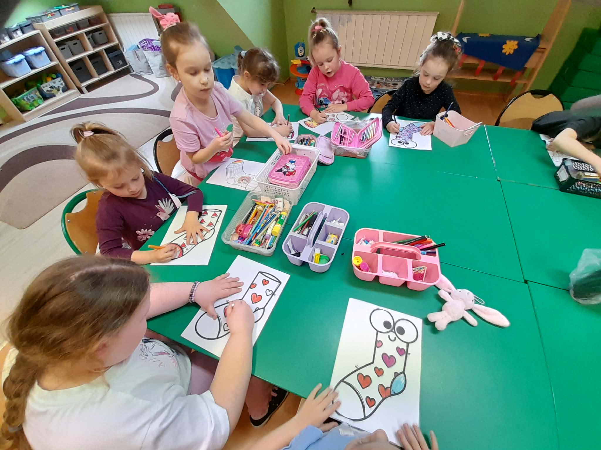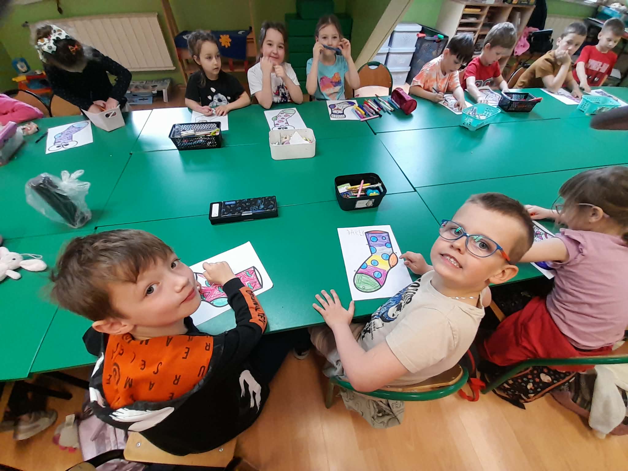 Z okazji Dnia Kolorowej Skarpetki szkolna biblioteka zorganizowała wyjątkową akcję dla najmłodszych uczniów- w ramach cyklicznych spotkań realizowanych pod nazwą „Czytankowo”. Dzieci z oddziału przedszkolnego 0a odwiedziły bibliotekę, gdzie miały okazję uczestniczyć w niezwykłych zajęciach poświęconych tolerancji i akceptacji. Podczas spotkania przedszkolaki wysłuchały pięknej historii o tolerancji, przeczytanej przez panią bibliotekarkę z wykorzystaniem teatrzyku kamishibai. Nowa forma przekazu wzbudziła duże zainteresowanie i zachwyt dzieci. Kolejnym punktem programu było obejrzenie krótkiego filmiku pt. „Dzień kolorowej skarpetki”, opowiadającego historię Fredzii – niezwykłej skarpetki, która przypomniała wszystkim, jak ważna jest różnorodność i akceptacja. Po powrocie do swojej sali przedszkolaki z zaangażowaniem kolorowały wybrane przez siebie obrazki ze skarpetkami, rozwijając przy tym swoją kreatywność. To był dzień pełen uśmiechu, refleksji i ważnych wartości . Dziękujemy wszystkim za udział!