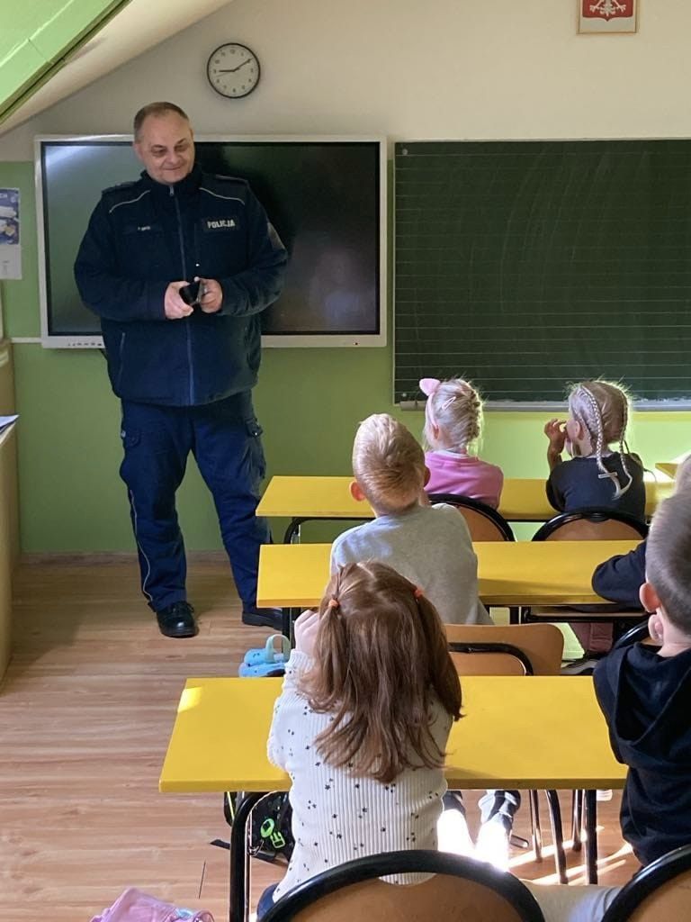 W ramach działań profilaktycznych, przedstawiciel policji z KPP w Limanowej spotkał się z uczniami klas pierwszych naszej szkoły. Wiodącą tematykę edukacyjnej prelekcji stanowiło szeroko rozumiane bezpieczeństwo oraz zagrożenia, na jakie narażeni są mali uczniowie w codziennym życiu. Podczas spotkania, dzieci miały okazję rozmawiać o bezpieczeństwie w drodze do szkoły, jak również i poza nią